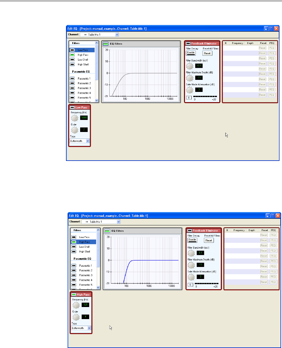 For the parametric EQ filters, the designer can choose from: