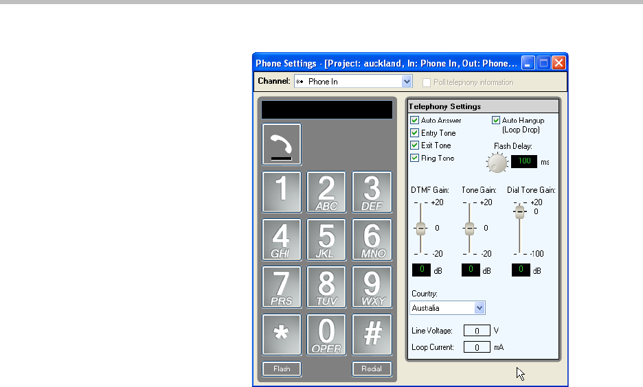 The telephony channel controls are shown in the following figure.
