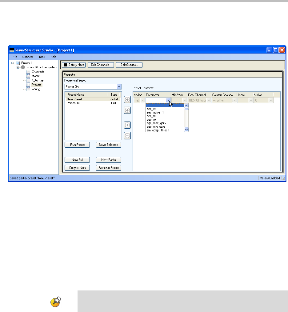 line to the partial preset, and allow the designer to select the parameter to