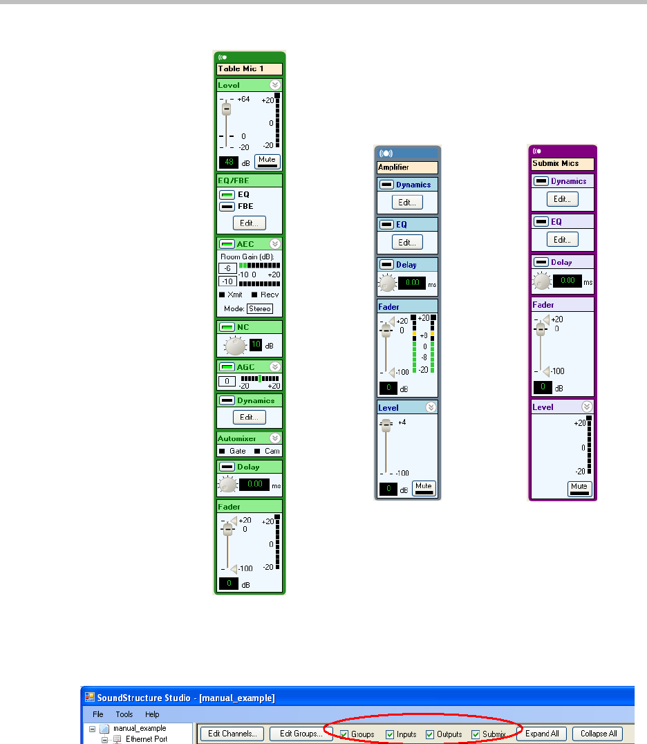 or disabling groups, inputs, outputs, and submixes with the controls on the