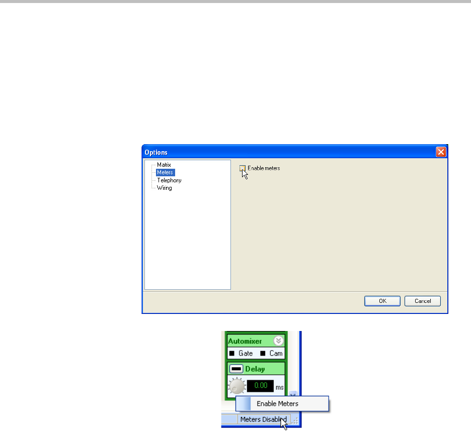 Enabling meters is a function of the SoundStructure Studio software and not